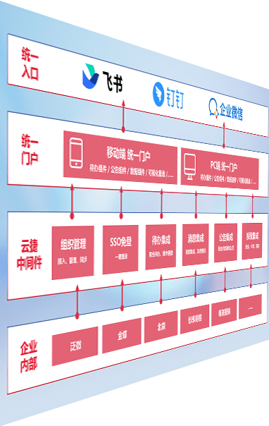 对协作平台提供支持服务,,支持企业应用与协作平台对接,,,包含组织同步、、、、消息集成、、、待办集成等。。。支持目前主流的协作平台:钉钉、、、企微和飞书。。。。
