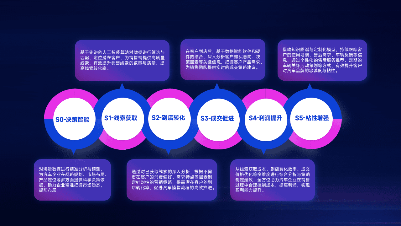 通过拓宽潜在客户来源、、优化线索分配并提高到店转化率,,,,以增强销售效率。。。同时,,利用线索数据不断优化分析模型,,,有效提升转化率,,,扩大营销影响力。。